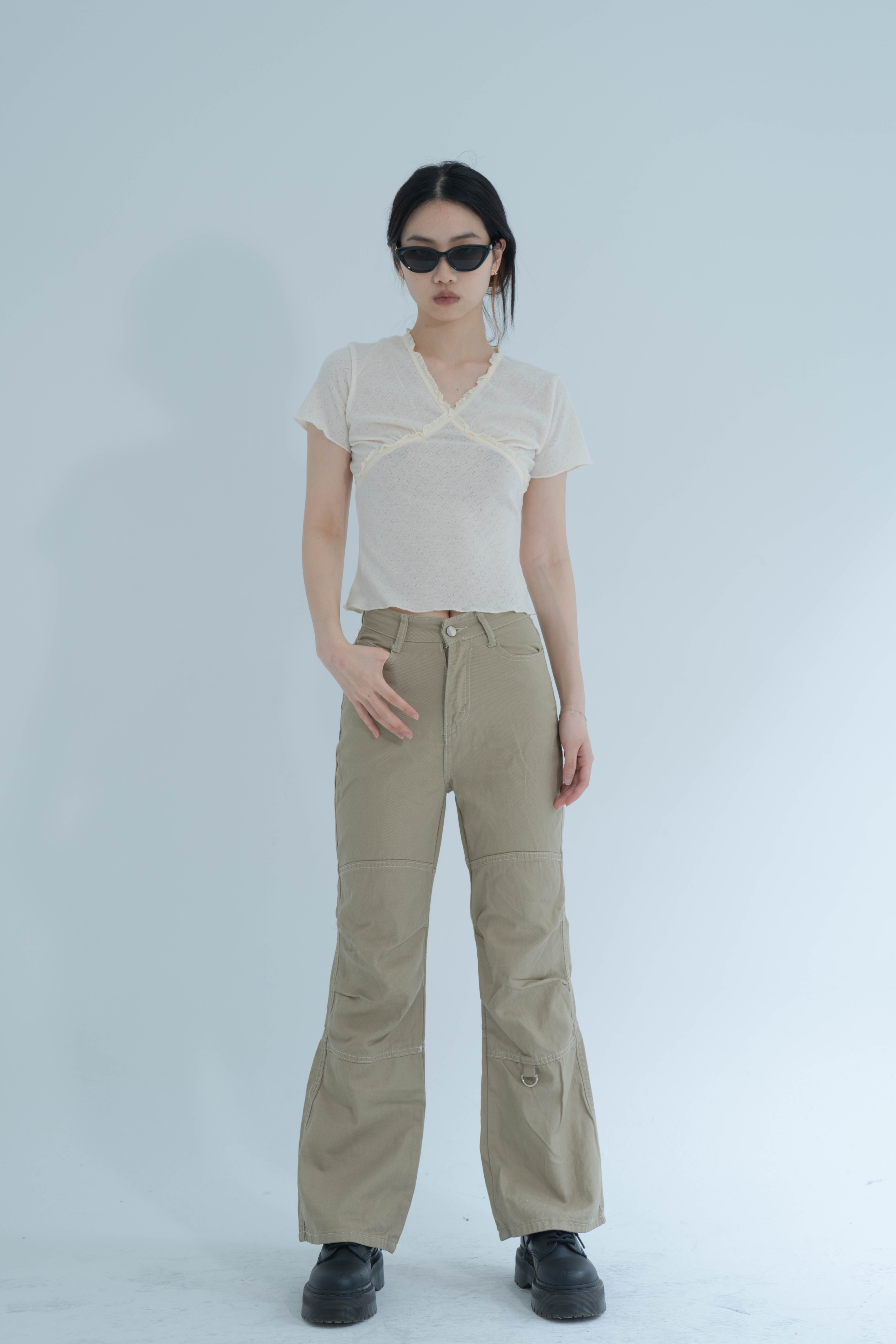 【jnauxz】杏色現貨!! 蕾絲花園 復古交叉蕾絲花邊微透上衣 (三色)