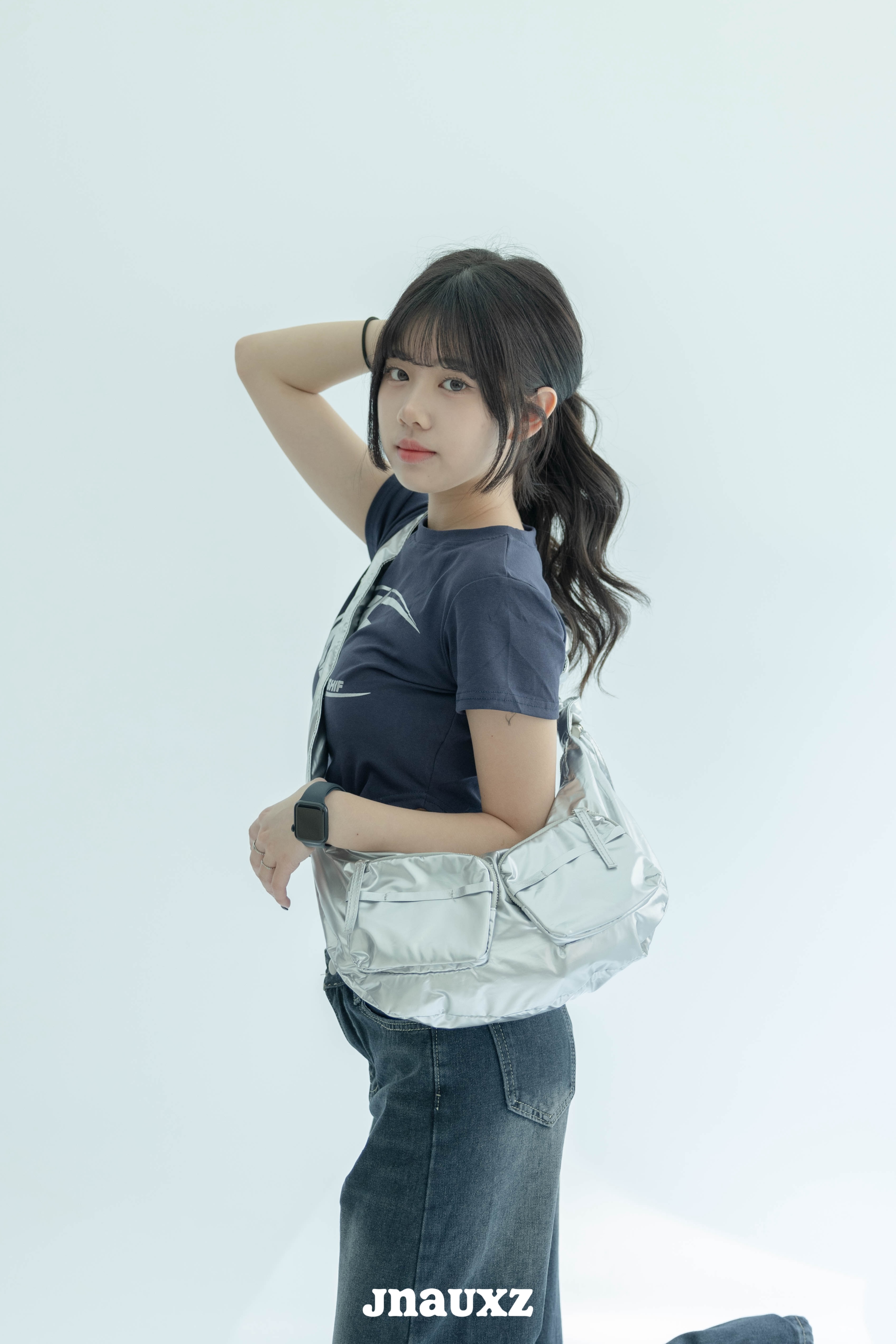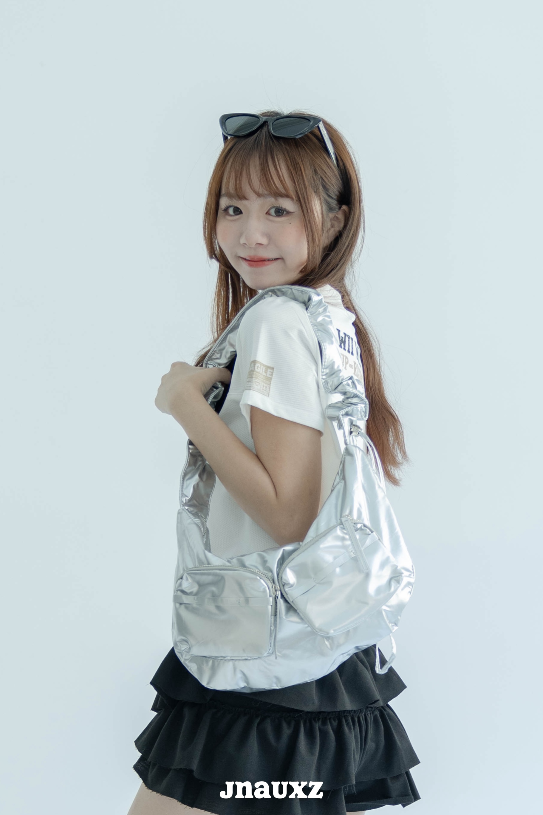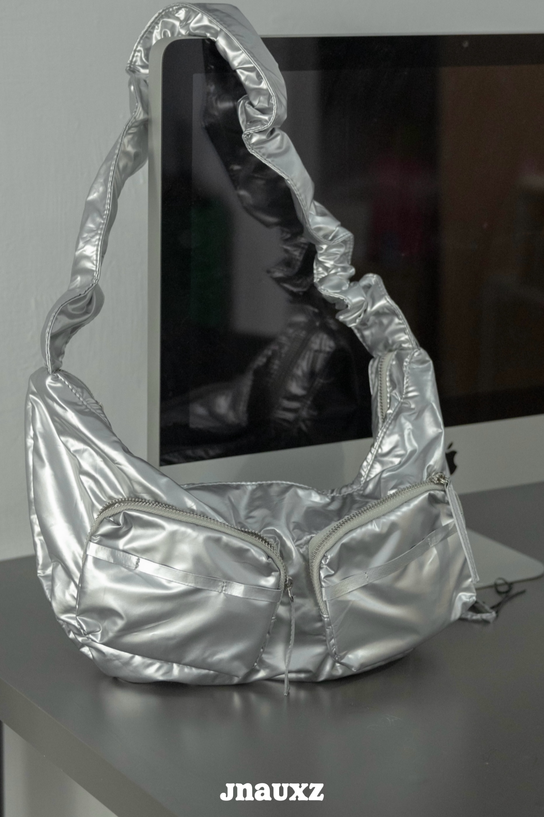 【jnauxz】帥氣銀色抽繩大容量斜跨包