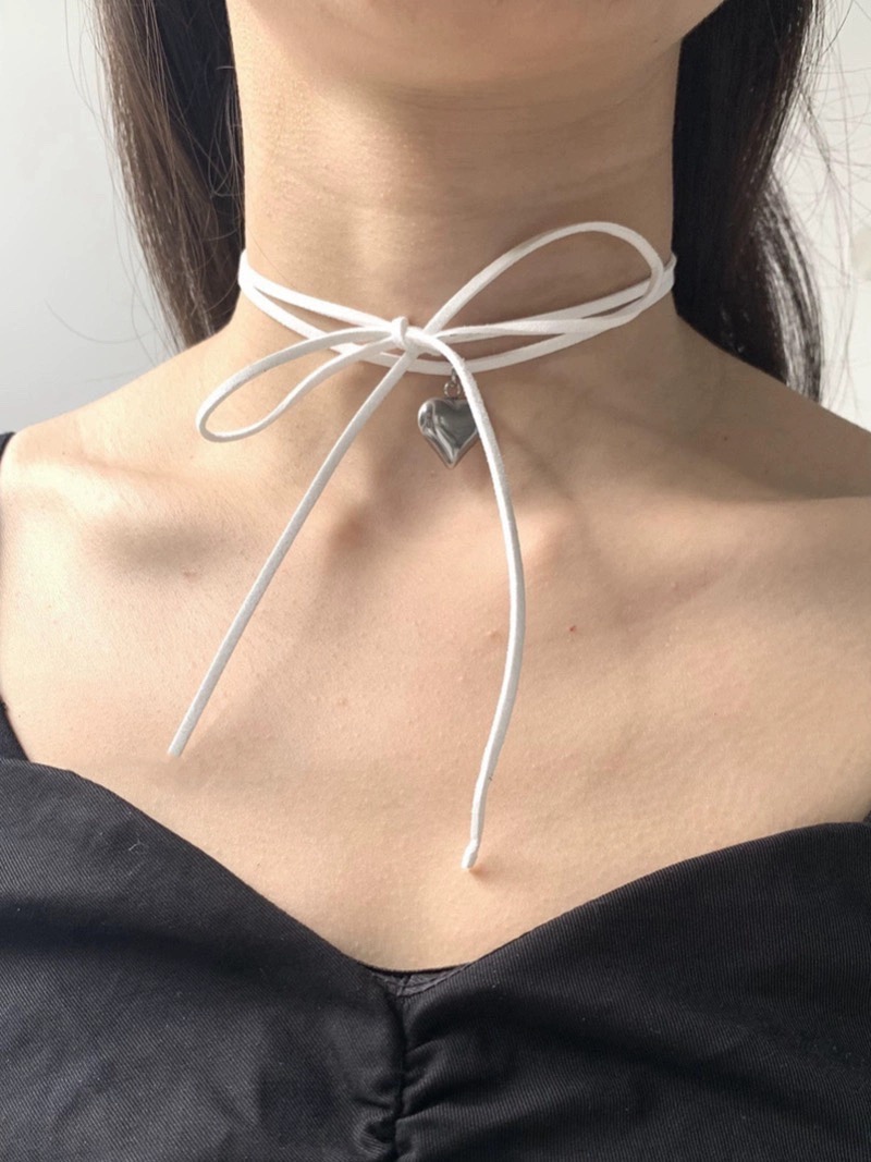 【jnauxz】現貨白!! 售完不補 愛心繞脖綁帶項鍊 (兩色)
