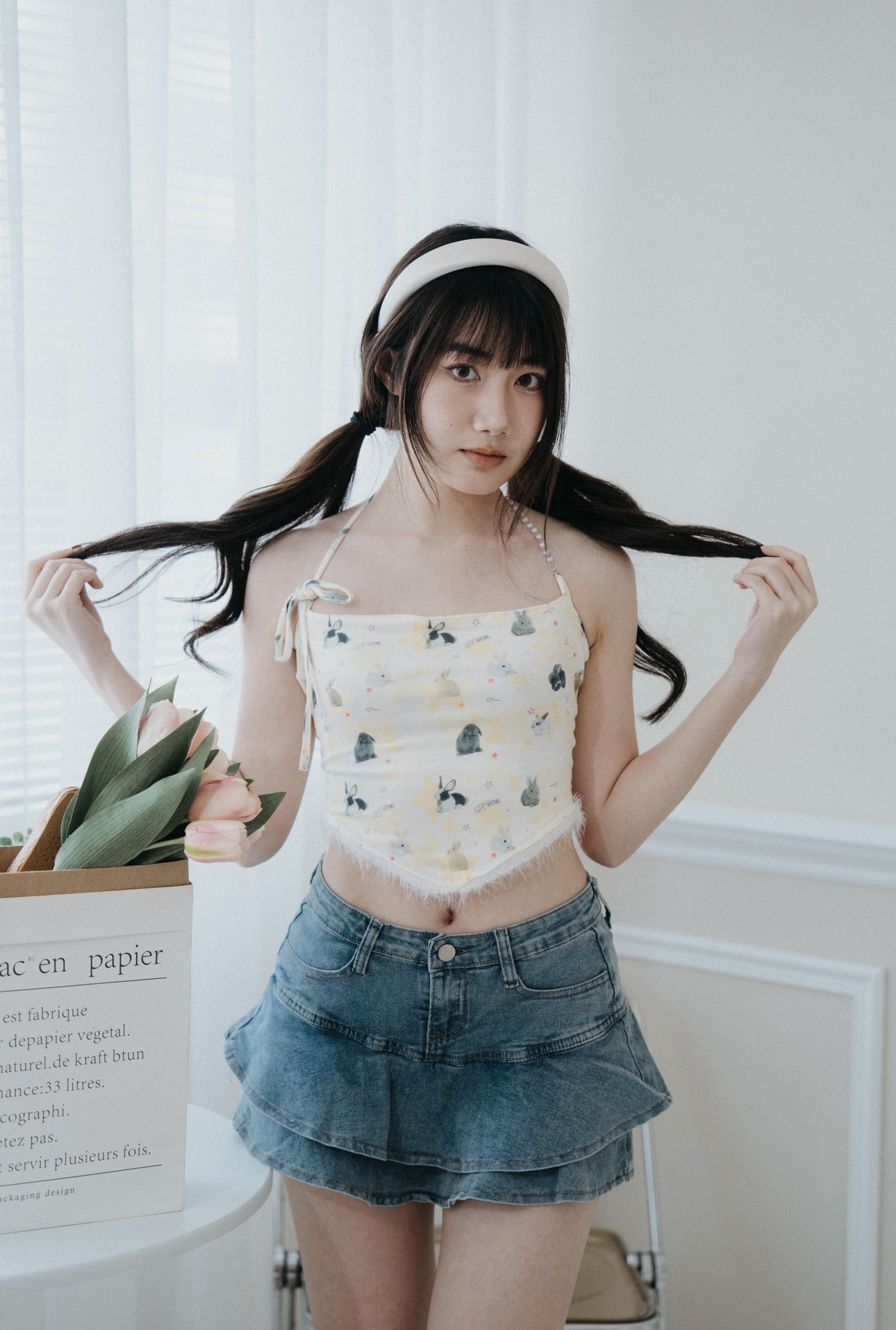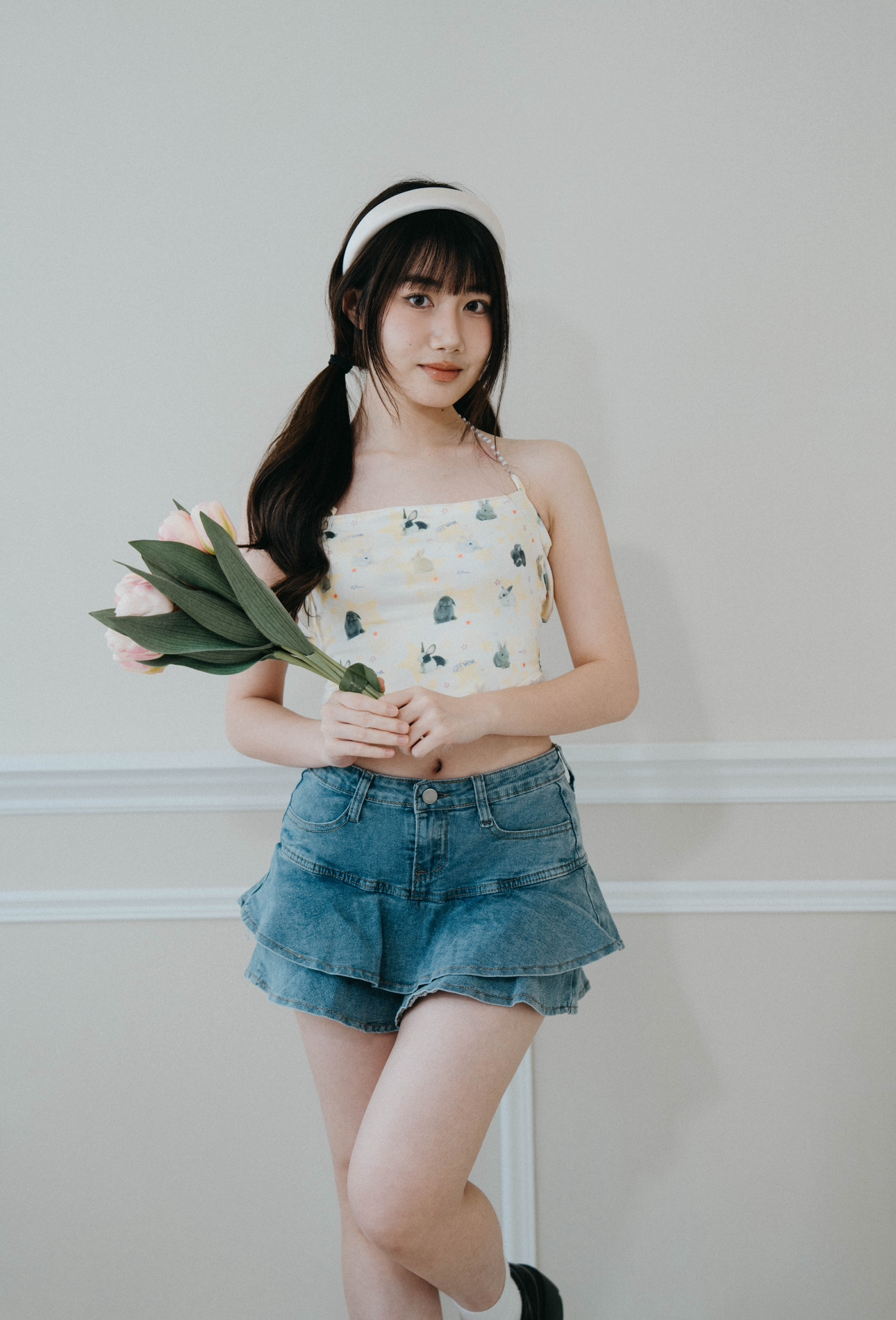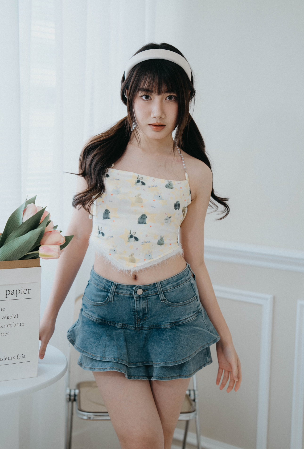 搭配可愛吊帶或是短版上衣都很好搭配<3