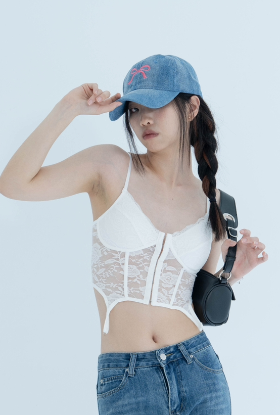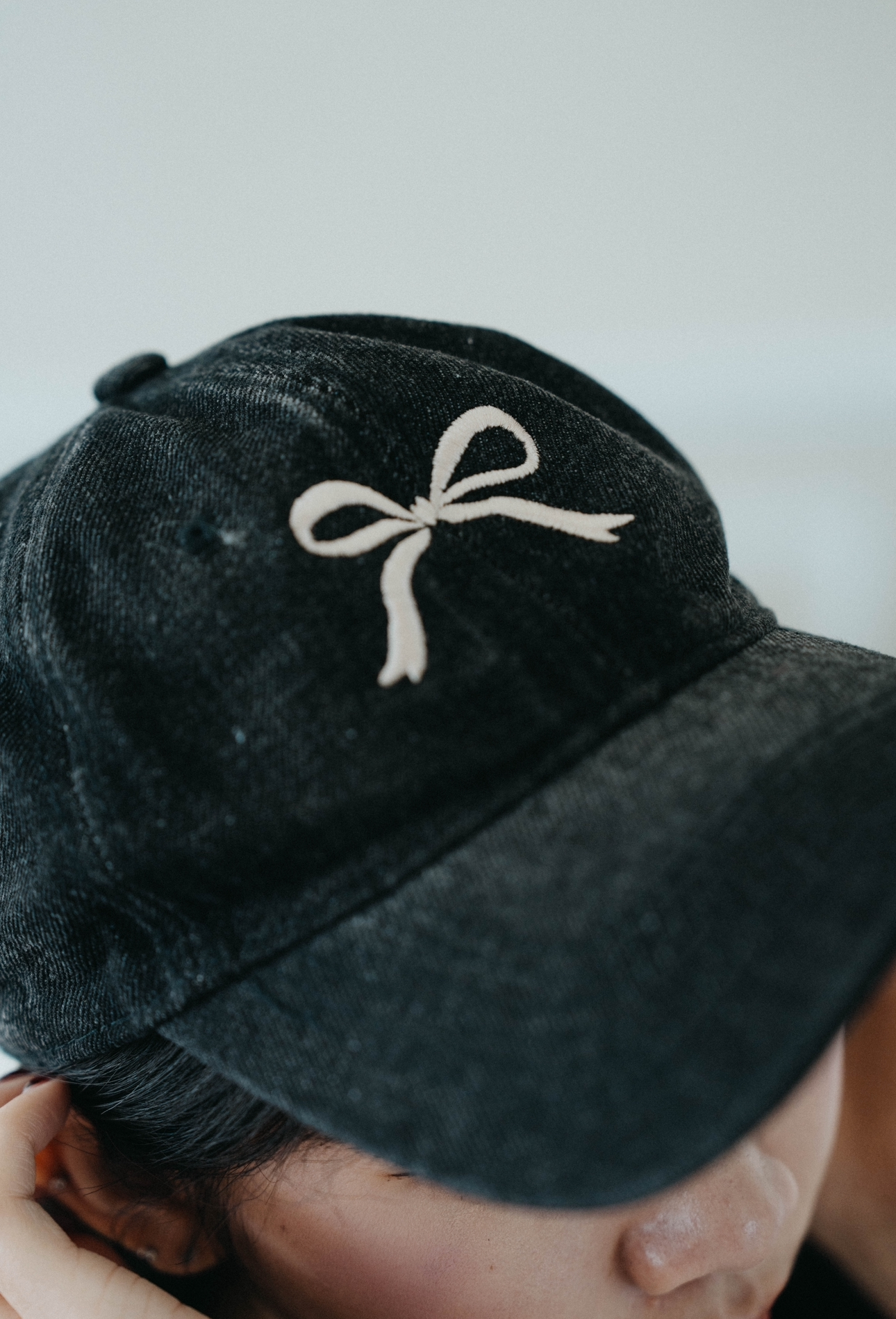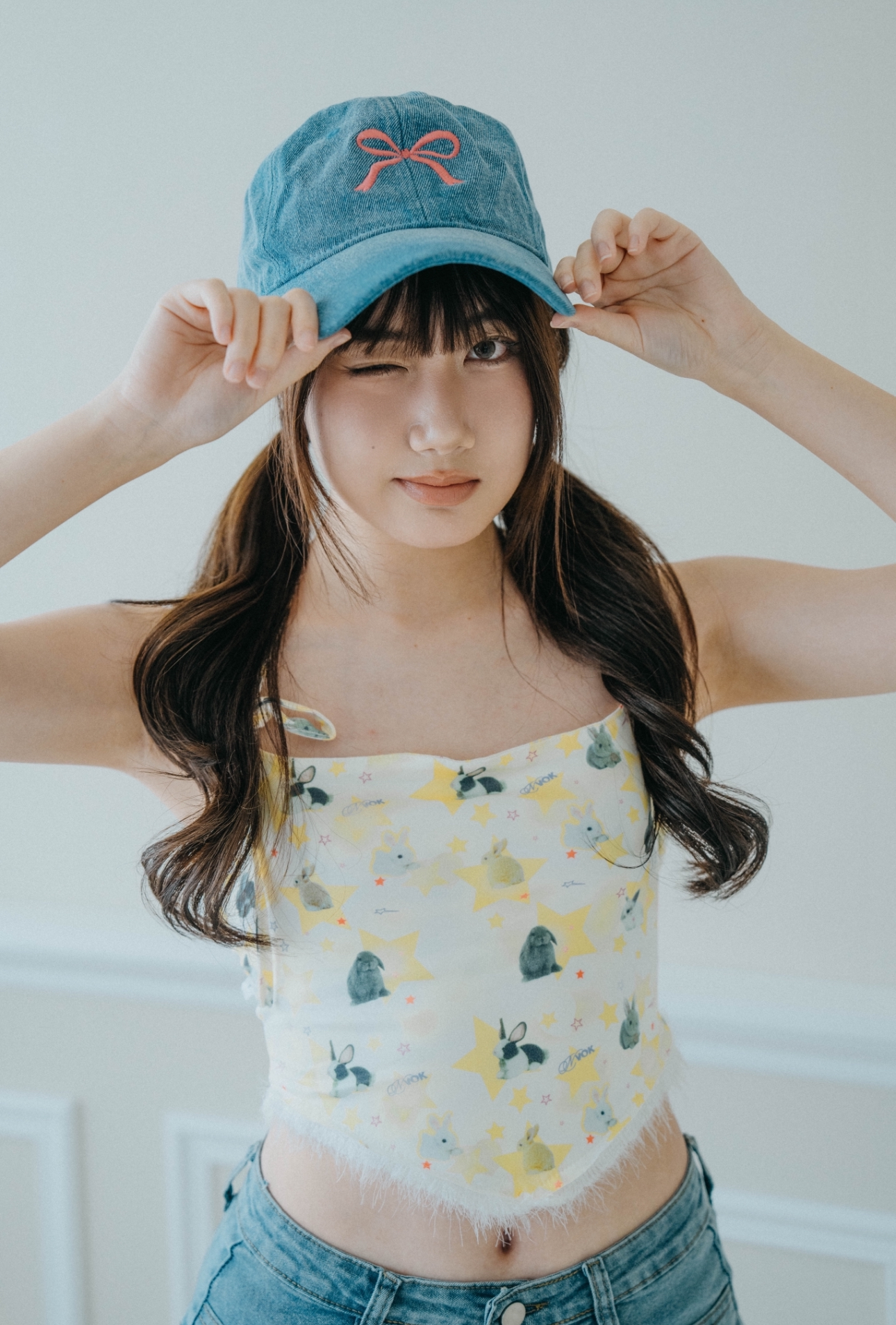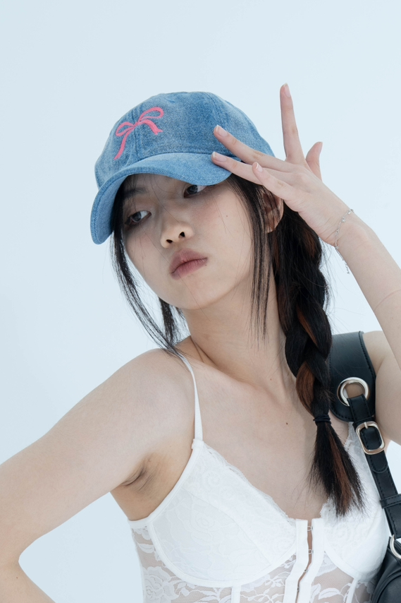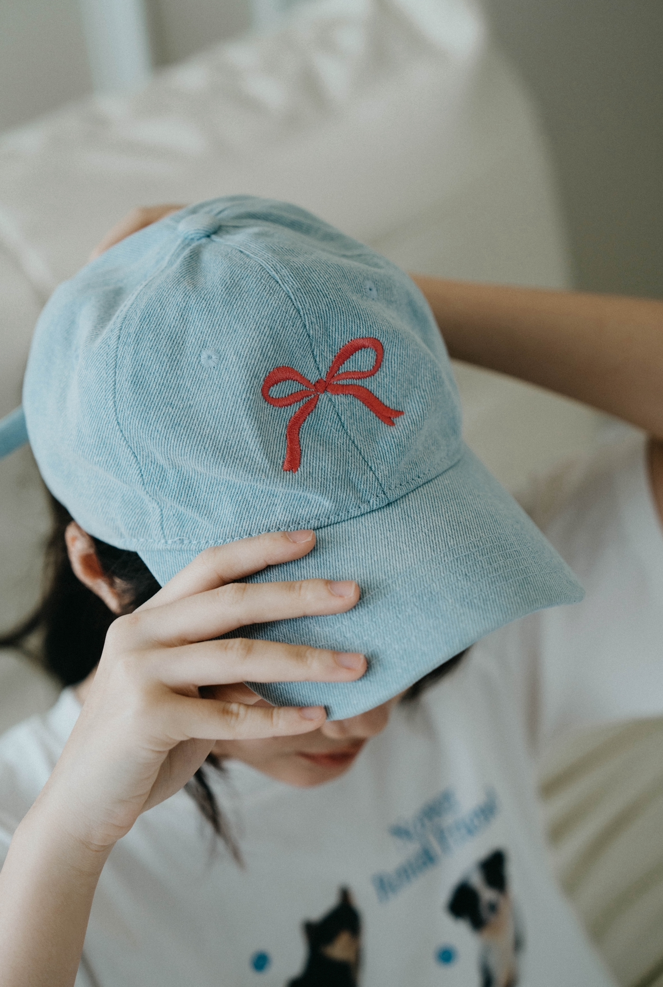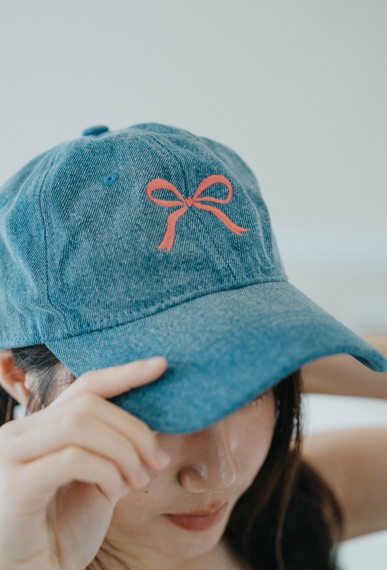 【jnauxz】現貨!! 春日甜心 水洗牛仔蝴蝶結刺繡鴨舌帽 (三色)