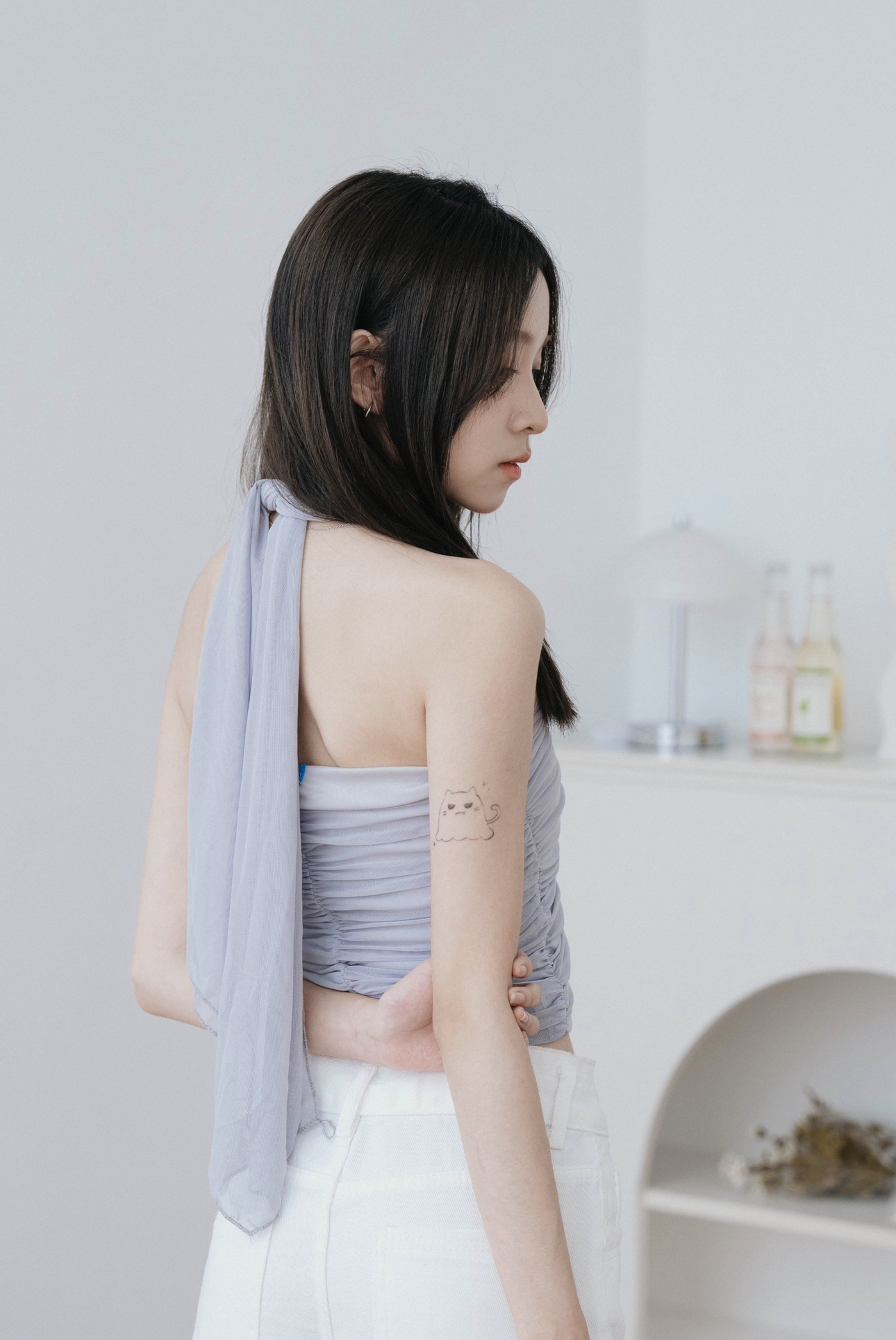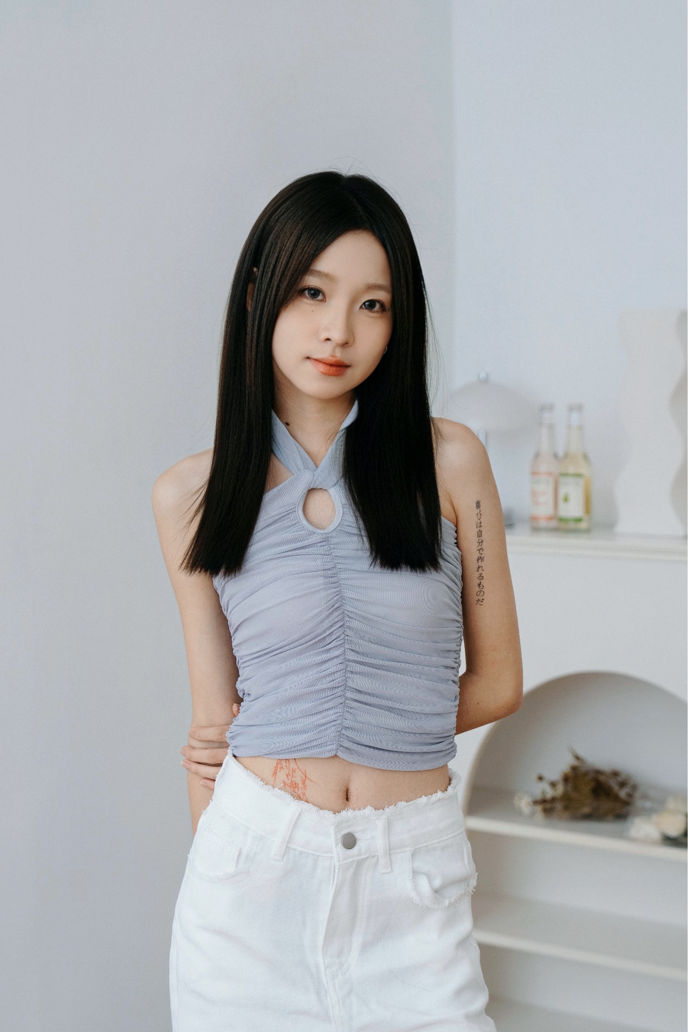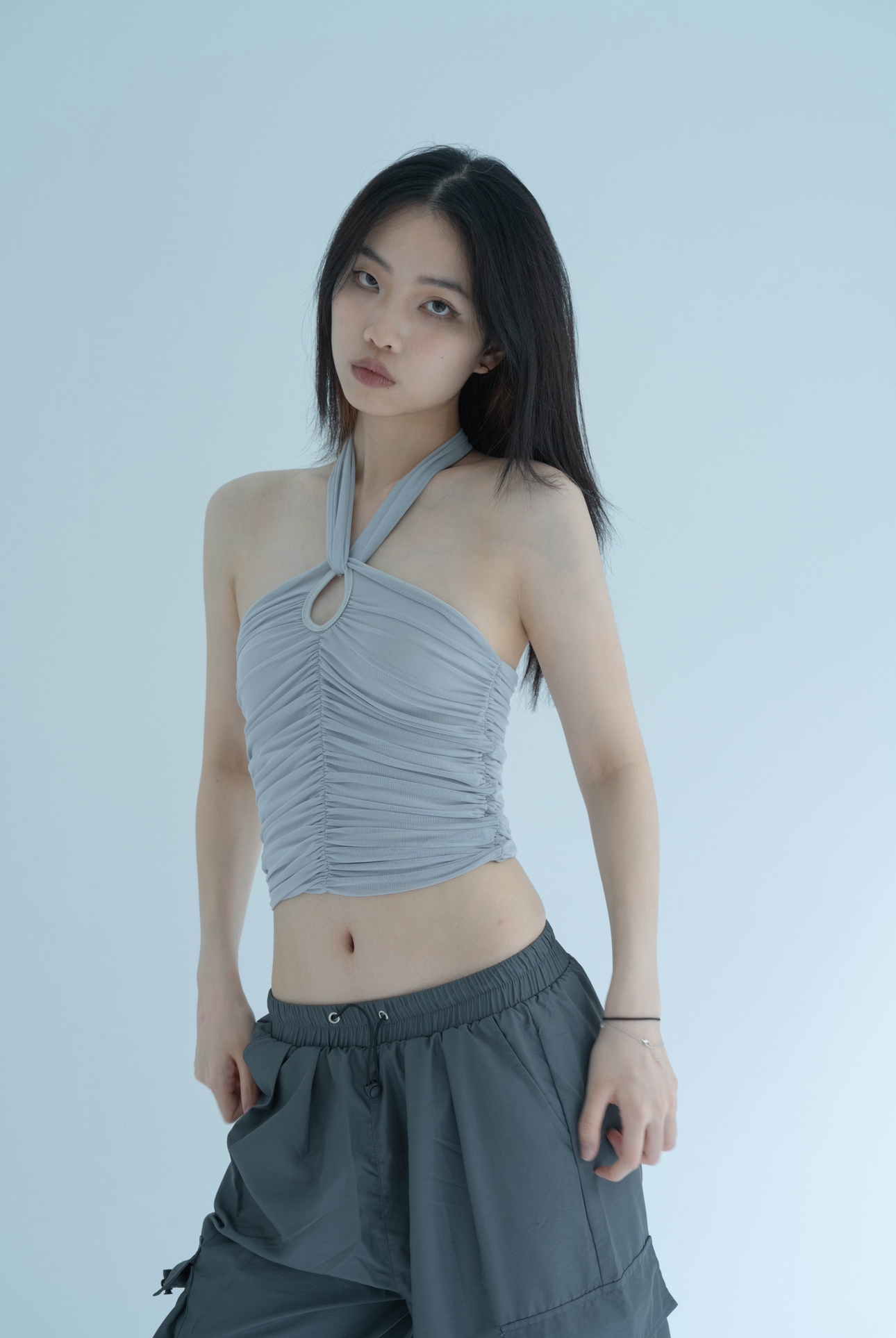 很特別的一款!褶皺的設計很顯瘦 材質還是網紗的質感 掛脖的部分可以自己綁自己調整 不怕走光或不合身~