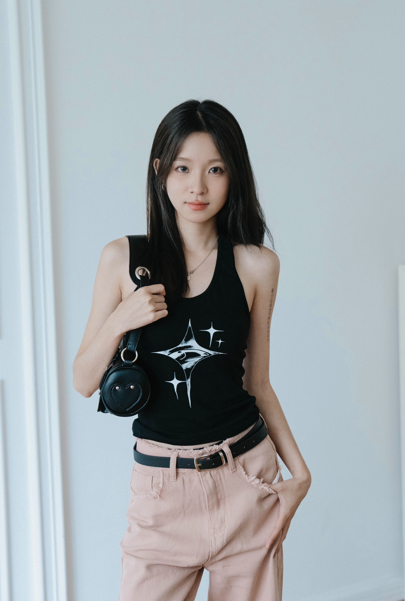 【jnauxz】不撞衫! 繞脖小眾印花顯瘦背心 (兩色)