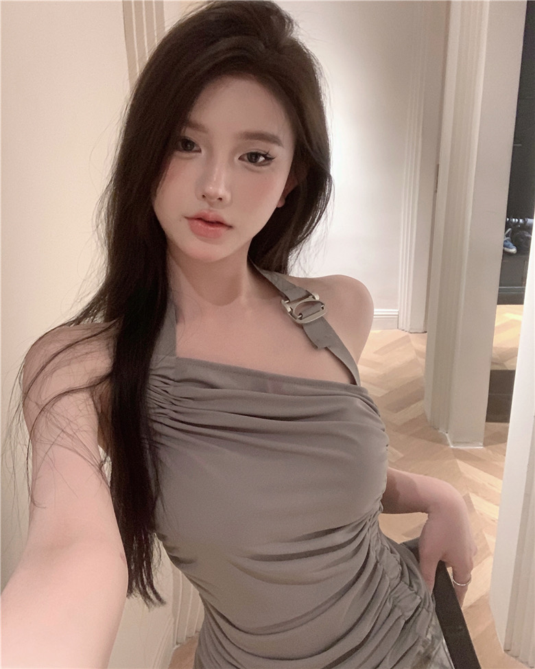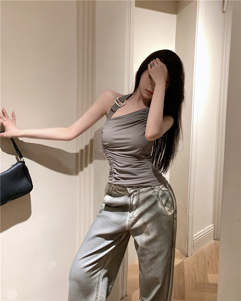 【jnauxz】鬆弛感up 慵懶褶皺掛脖吊帶